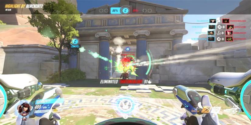 While D.va can absorb a ton of damage, the flipside of this is that she's also an easy target with her large mech. This makes her problematic if you're on the frontlines and don't currently have your Defense Matrix at hand. Thus, you'll need to be careful not to open yourself up to too much enemy fire, lest you build up their Ults to a lethal degree.