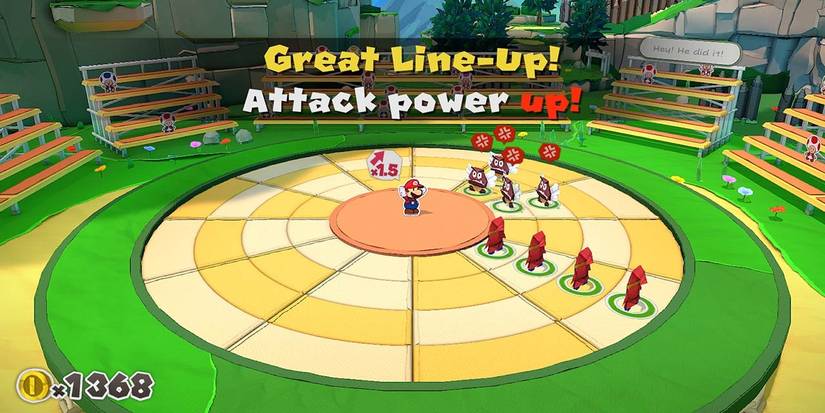 One of the more important aspects of the Paper Mario series for fans is the battle system. According to the video, the turn-based element of the system returns. Battles take place on a ring in which you try to line-up enemies so you can deal the most damage across a bunch of them. After lining them up, you will have the chance to choose how to attack them.