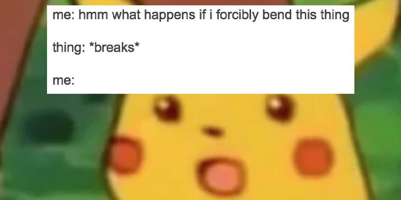 We've got to finish off this list talking about the best Pikachu meme (yes it is) combined with one of the most relatable things that every overly curious person has seen themselves doing. Seriously somewhat bendy things that aren't meant to be bent are some the bane of ADHD riddled people everywhere. You know you shouldn't bend the thing but you do and when it breaks you really shouldn't be surprised at all but you can't help but make the surprised Pikachu face.