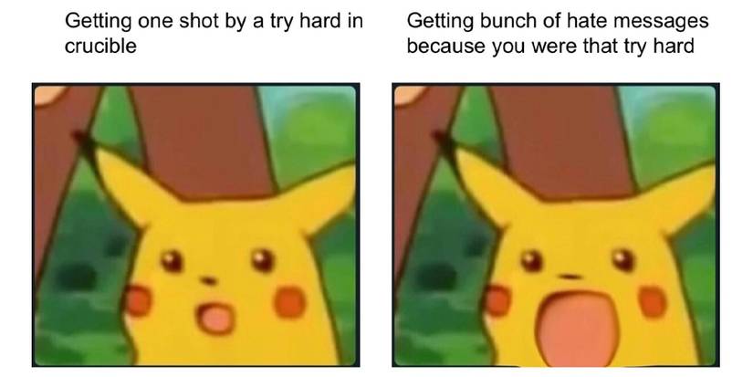 Starting off this list with the legendary surprised Pikachu meme. The best thing about memes, even ones from video games or TV shows, is that they are so universal that they can perfectly explain any number of situations that can be found in video games. One thing that will always be in competitive video games is people complaining about certain people being try-hards for using certain weapons. But we all know that the people who say this also like to use those weapons.