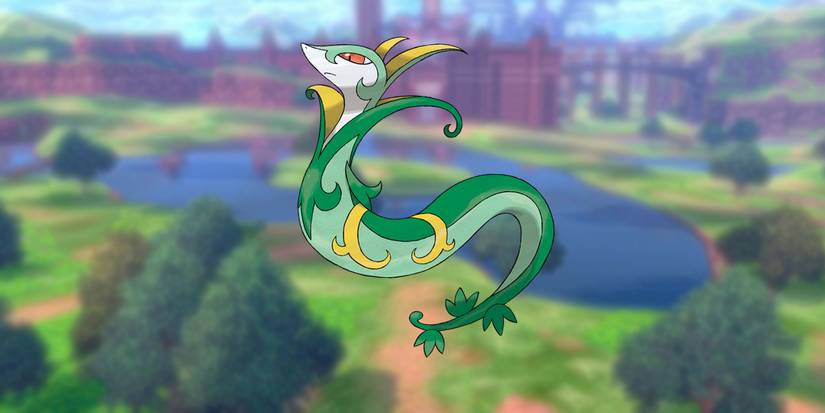 Although its early forms stand on legs, Serperior goes snake-like for the final evolution. It's also one of the prettier Pokémon out there. The head of the Pokémon looks like it is blooming out of a flower as two yellow extensions and two dark green extensions poke out from its neck area surrounding the head.