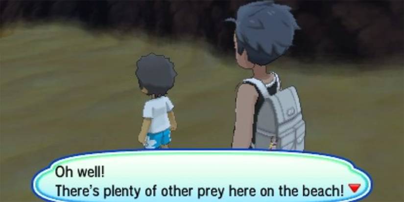 In Pokémon Ultra Sun And Moon the player can explore the beach and come across a small child standing next to a crude sand castle. The child invites the player to see what he’s made and doing so triggers a Sandygast attack.