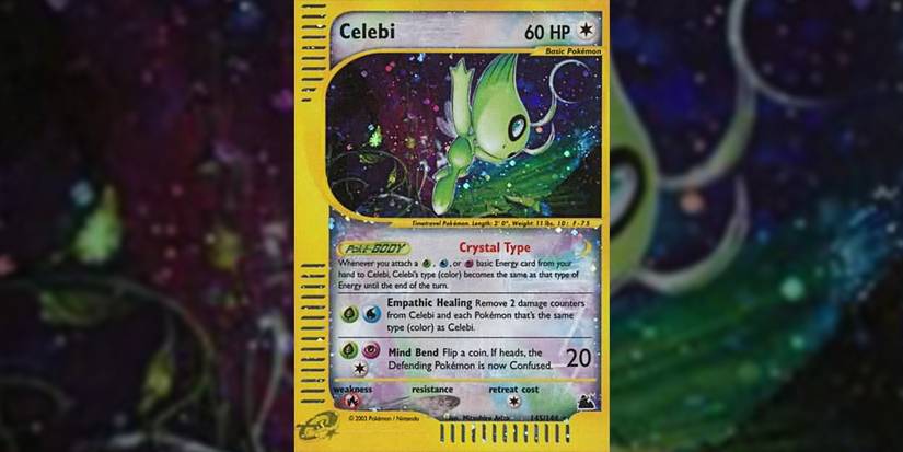 Although one of the Crystal Pokemon with the lowest base HP, Celebi from the Skyridge set can be a decent support card. With the right timing and energy attachment, Celebi's Empathic Healing can restore some health in dire circumstances for itself and others who share the same type.