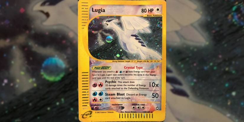 Legendary Pokemon are usually extremely powerful, though this is not always the case. Lugia, also from the Aquapolis expansion, proves this with its relatively low HP and mediocre attacks. Its Psychic can be useful against foes loaded with energy cards, though its Steam Blast attack can only realistically be used a couple of times before it becomes a burden to the trainer's energy needs.