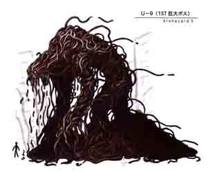 The U-9 was originally an 80 foot tall behemoth that would have been the result of the Urboros virus in Resident Evil 5. Its worm-like visual elements give it striking resemblence to other Uroboros-infected enemies that were included in Resident Evil 5.