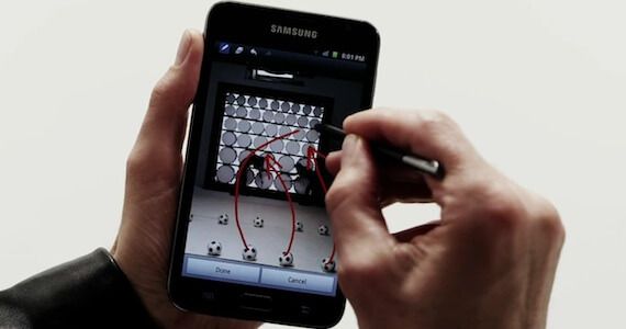 The video was filmed to promote the Samsung Galaxy Note, which is a stand out in the Android universe, with ultra-high-quality video, a simplified user interface, and the revolutionary S-Pen that allows users to write directly on the 5.3" screen (a definite bonus for any Draw Something players).