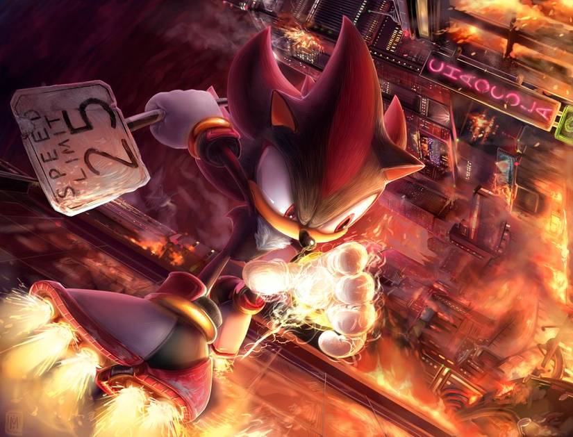 This fan art is not only incredibly detailed and splendidly drawn, but it does a brilliant job of representing Shadow's personality. As the world burns around him, Shadow expresses not even a sliver of fear; however, that does not mean the black hedgehog is relishing the destruction.