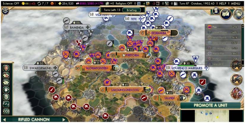 Cavalry and Cannonades is another multiplayer scenario found in Civilization 6. The scenario starts players in the Industrial Age and gives them 50 turns to conquer the most land on the map. It just seems like what players would already do if they were playing a regular multiplayer game against friends.