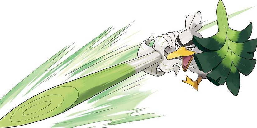 The upcoming evolution of Farfetch'd could easily be the next sword-based fighter, donning an oversized onion lance and leaf shield. Imagine his fluttering like Yoshi or Peach when he jumps, then attacking like Meta Knight. Let's all stan Sirfetch'd in Smash.
