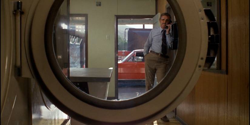 Duel remains locked into this simplistic conceit for its short 90-minute runtime. David never discovers a deeper reason for the truck stalking him along the road aside from the petty motive of having overtaken it. Duel never even shows the truck driver, recognizing that sometimes the scariest thing is what you don’t see, leaving the imposing Peterbilt 281 tanker truck as an ominous, even demonic, presence. Strapped to its rusted grill are several license plates, hanging like a warlord’s trophy collection of skulls.
