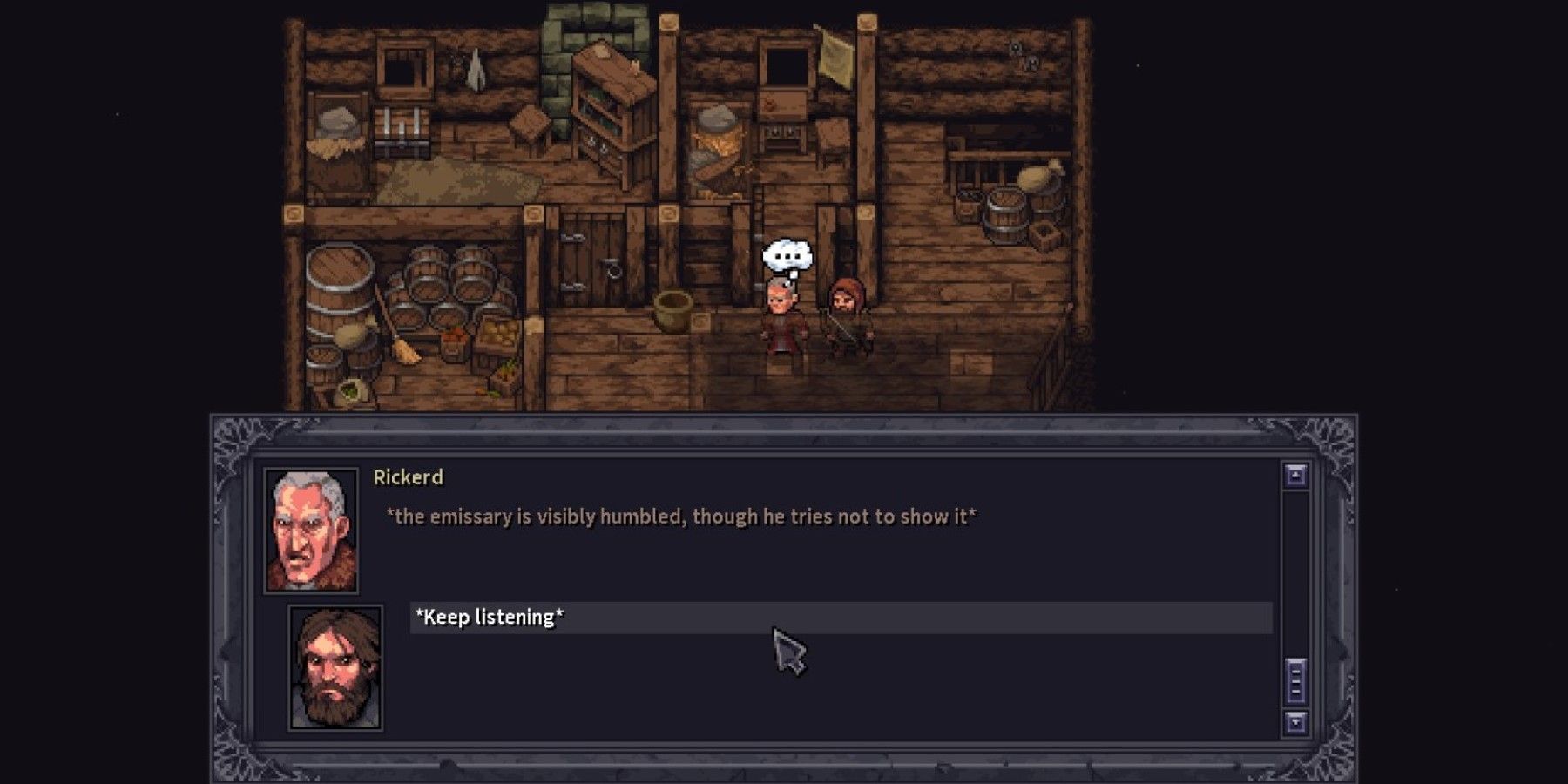 Head back to The Black Boar inn and head upstairs. Rickerd is there, preening and complaining as he does. He has a task available, which he gladly sets the player on before sitting down at the table. He will remain there for all characters, and his quest will be taken out of rotation for other characters. That is, until he’s captured again.
