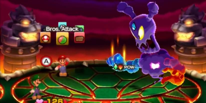 The Mushroom Kingdom introduces boss Elder Princess Shroob in level Partners In Time. The Bros. Have to smack her tentacles together so they do not grab a hold of them. After containing her tentacles, the Mario and Luigi throw energy balls at her.