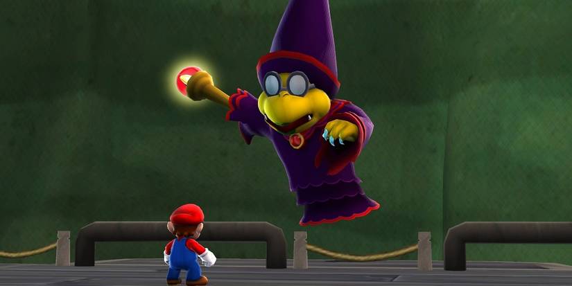 The leader of the Kamek’s fights Mario multiple times throughout the game. Kamella has a Power Star trapped in her staff, challenging Mario to try and take it. The strategy to take her down is to lob Green Shells at her when she spawns Koopas around the area.