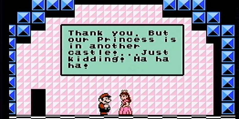 Super Mario Bros. 3 features major innovations in terms of its level design, but it retains the series' core idea of Mario needing to rescue Princess Peach from Bowser. Mario is very used to reaching the end of a castle, thinking he's reached Peach, only to learn it's just some enemy in disguise. The ending of Super Mario Bros. 3 has Peach poke fun at this when she gives Mario the whole "Our princess is in another castle" speech, only to then undercut it with "Just kidding!" It’s the kind of cruel trick that could send Mario into a tailspin.