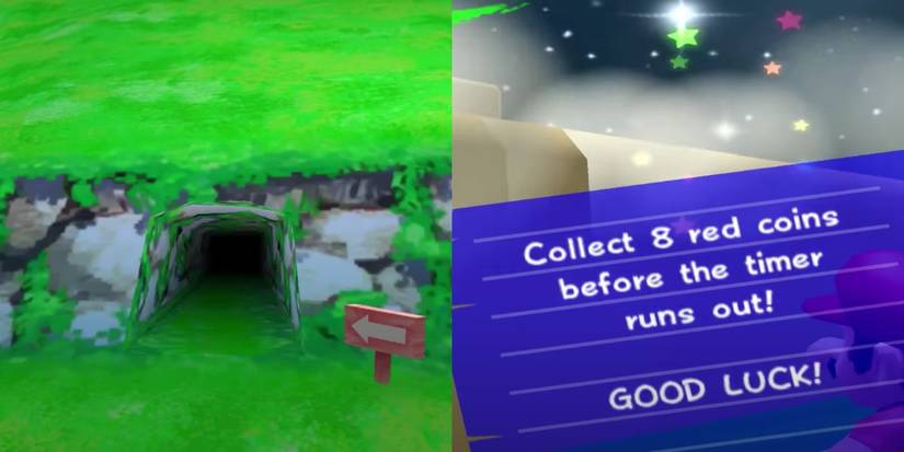 Now for the secret Shines. In The Hillside Cave level, Episode 3, there will now be a red button to ground-pound. After doing so, a red coin collection challenge begins. The coins are spread out throughout this classic-styled level. Players only have one minute to obtain them all.