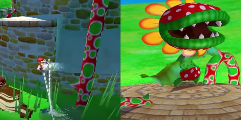 Speaking of Piranha Plants, this episode includes the most famous one of them all. Petey Piranha is back for Super Mario Sunshine, and he's grumpier than ever. To complete this episode, Mario must climb the tower in the middle of the lake. This will prove itself extra difficult since Petey has spikey vines spread throughout the entire tower.