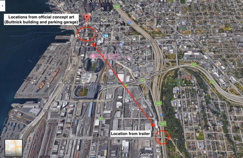 Using Google maps, further evidence is presented that the location in The Last of Us Part 2 is indeed Seattle as the concept art depicted the Buttnick building and parking garage, which is roughly 1.3 miles away from the street sign found within the latest trailer. Lastly, the foliage and trees depicted are also fairly consistent with what Naughty Dog has revealed in previous concept art and the initial trailer as well.