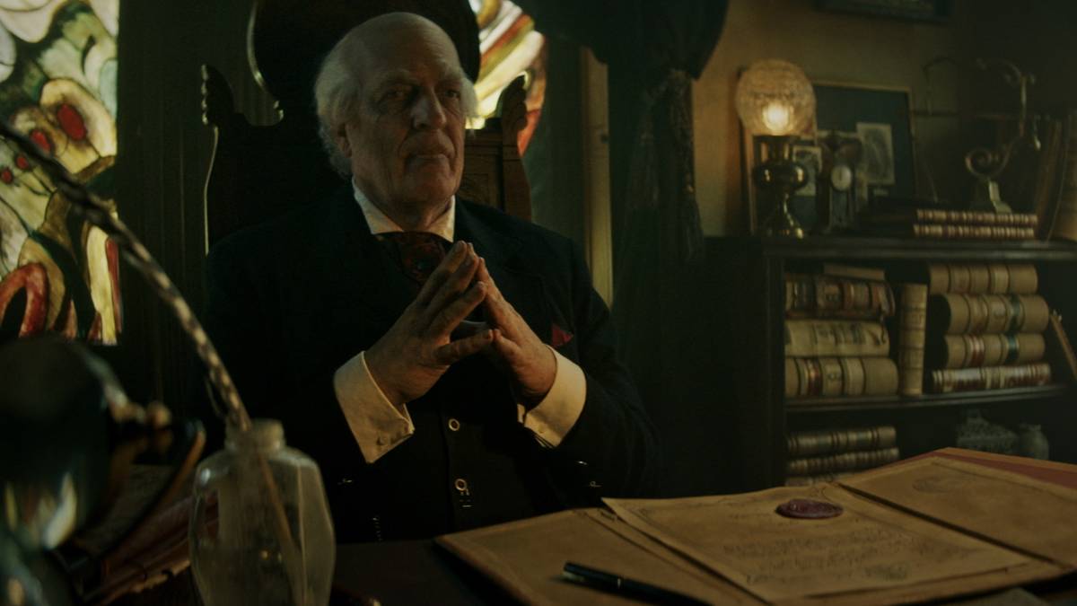 Its protagonist, funeral home director Montgomery Dark, played by veteran actor Clancy Brown (Highlander, Thor: Ragnarok, Warcraft), looks like he's probably poker buddies with all of the EC horror comics' gruesome narrators. Nothing shocks him, everything seems to vaguely amuse him, and thanks to an impressive makeup job by ADI, he looks as much like a corpse as the people he's embalming. From the moment he comes onscreen, delivering a visibly unpopular eulogy at a child's funeral, Brown as Dark isn't so much chewing the scenery as low-key menacing everything within his line of sight.
