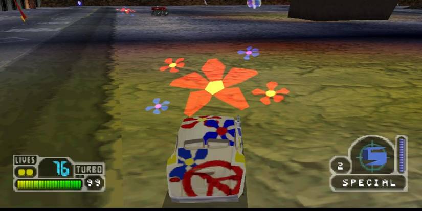 The series has never been popular in Japan, and maybe it is because the developer never followed Sony of Japan's weird suggestions. They wanted David Jaffe and the rest of the development team to replace the guns with fruits and vegetables, perhaps to sell the game to a younger audience. SingleTrac never seriously entertained this idea, which is probably a good thing because the game's aesthetic is such a big part of the appeal.