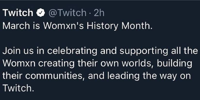 Today marks the start of Women's History Month, or maybe "Womxn's History Month," depending on who's talking. The month just started, but the person running the Twitch Twitter account is already having a bad time.