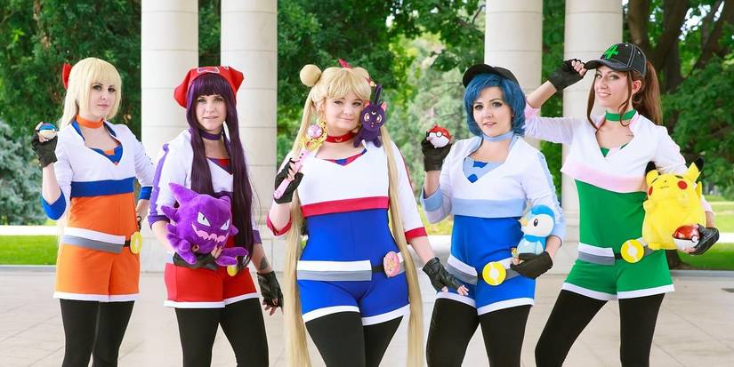 A lot of mashup cosplays can be done with Pokémon as well as Sailor Moon, so why not put two and two together? The sailor scouts are easily recognized by their diverse colors and hair, and Pokémon accessories are typically recognized even by non-fans. These cosplayers are wearing the default outfit from the Pokémon Go mobile game while also dressed as sailor scouts.