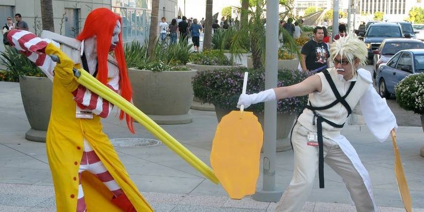Mashups do not get more silly than this. Where we have Ronald McDonald, the McDonald's mascot, as Sephiroth and Colonel Sanders, the mascot for KFC, as Cloud. This photo was shot by Steve Burt at the 2008 Anime Expo in Los Angeles, and the cosplayers are unknown.