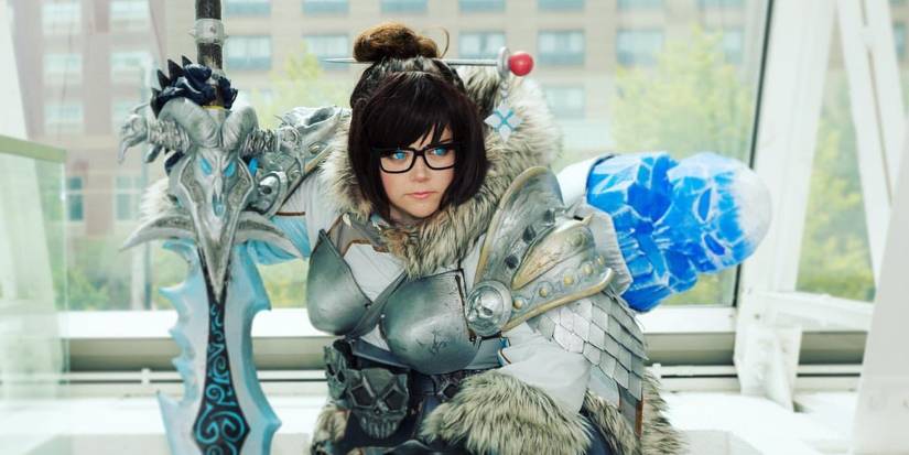 Mei from Overwatch is a Chinese climatologist who uses weather-altering devices to fight her opponents. Her character has been combined with the World of Warcraft character, the Lich King. The two of them suit each other because they are both connected by having ice elements to their characters. So, together, they make Mei, the Lich Queen. She is easily recognizable but has the intimidating skull and armor pieces along with the weapon that the Lich King is known for.
