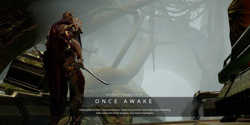 Before players enter the Infested open world on Deimos, players must first get properly introduced to the faction. That is exactly what the "Once Awake" quest does. Players will need to investigate a mysterious Grineer bioweapon that turns out to be the ancient Infested threat. Investigate what the Grineer are doing, devise a plan to stop the Infested on Mercury, and take them down to complete the quest and progress the main story. It also grants the Heat Sword Blueprint on completion, a solid sword that deals significant damage against fleshy targets such as the Infested.