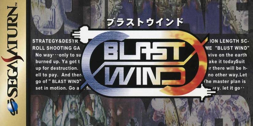Blast Wind was released on the Sega Saturn in 1997. It was never released outside of Japan, which may help to explain this typo. On the cover, behind the title of this beat 'em up-style game, there's a paragraph of seemingly nonsensical work to bring some detail to the cover art.