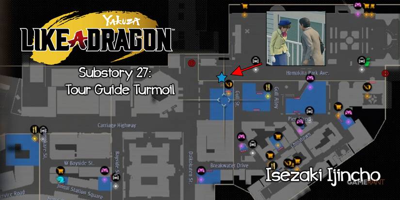 Substory 27: Tour Guide Turmoil is available during Chapter 9 of Yakuza: Like A Dragon and takes place in the game’s main locale of Isezaki Ijincho. To unlock this substory, Ichiban and the gang should head to the Hamakita Park area in northeastern Isezaki Ijincho.