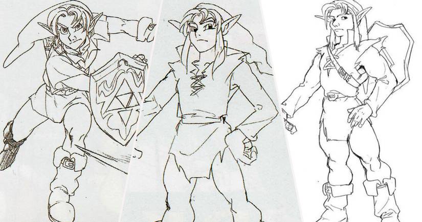 Although Ocarina of Time begins with young Link, Nintendo originally planned for the game to solely star an adult Link. When Shigeru Miyamoto requested that Link be younger, the development team came up with the idea of Link aging over the course of the story. Link's design had been more or less finalized at this point (seen left,) but he also sported two variations taking cues from Zelda II. Considering Shigeru Miyamoto had been working on a remake of The Adventure of Link for the Super Famicom right before working on Ocarina of Time, it's safe to say these designs are leftovers of Zelda 64's original AoL influence.