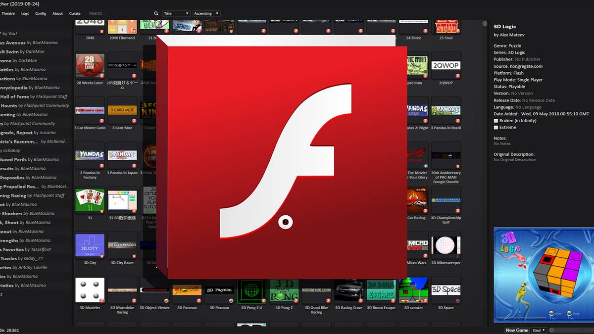 Flashpoint is an archive of over 38,000 games and 2,400 animations, saving an important part of internet history, video game history, and many people's cherished memories. The program, which can run on thirteen platforms, also supports Adobe's Shockwave, HTML5, Java's Applets, and Unity Web Player.