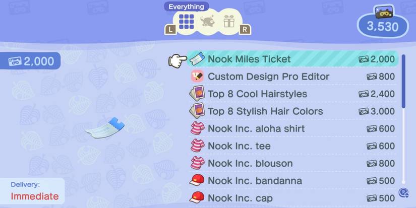 When players first arrive on their island, they have just a little bit of room in their pockets to carry things around. This may not be painful at first, but as more things are earned in the game, it'll be harder to deal with just 20 slots in the inventory. Luckily, with Nook Miles, players can get the Pocket Organization Guide, which for 5,000 miles, increases their amount of space to 30. When the Residential Services is fully upgraded, the Nook Stop will make available what's called the Ultimate Pocket Stuffing, which then increases space to 40. This costs 8,000 miles.