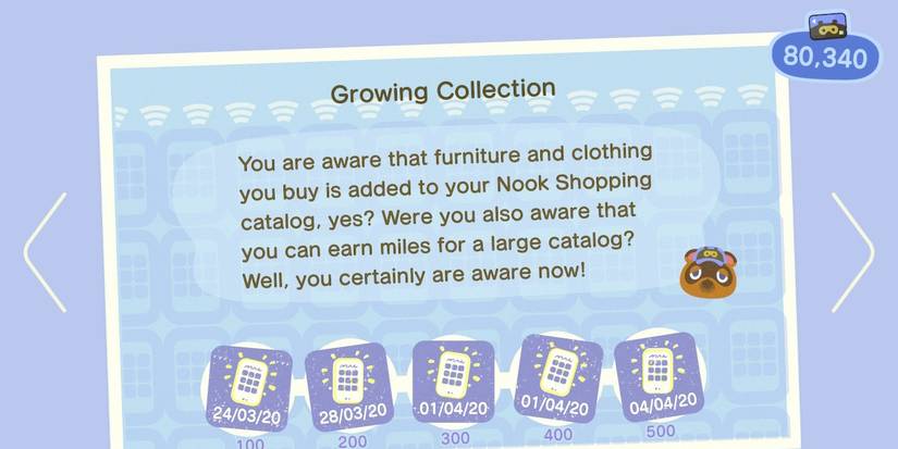 Growing Collection is a task that requires the player to catalog items in the game (done by purchasing/picking them up). The rewards for this task are the standard 300, 500, 1000, 2000, and 3000 Miles, in their ascending order of difficulty.