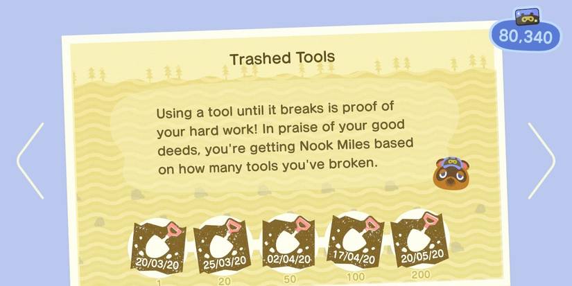 Trashed Tools is a task that requires the player to break their tools (which is done by using them a certain amount of times). The rewards for this task's completion are 300, 500, 1000, 2000, and 3000 Miles per level.