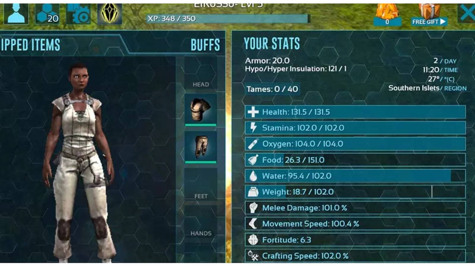 The energy that a player has is affected by activities such as swimming, running, and harvesting. A low stamina results in a faster drop in water and food levels, making it hard to play this game. Players with low stamina mostly collect less when foraging. Upgrading this stat early enough is therefore useful. Players with more stamina have increased movement speed, allowing them to make faster trips.
