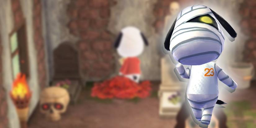 This adorable mummy-like dog usually has an Egyptian theme to his home, which is why we call him a mummy-dog. But, in New Horizons it seems like the pup has become a bit more macabre and has gone for a graveyard theme instead.
