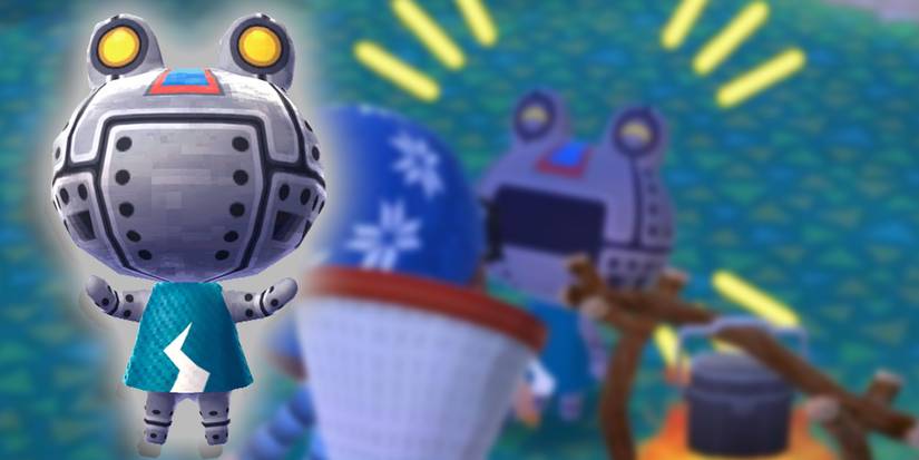 There are a couple of "machine lifeforms" in the Animal Crossing world who don't seem to be fully aware they're machinations. Ribbot is one of those, being a full machine frog. Ribbot is also a "Jock" type villager, which must mean this is a bit of an ironic joke on Nintendo parts since machines can't really "workout" to build muscle.