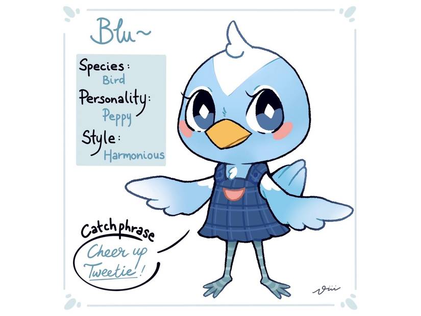 Blu, true to their name, is a bluebird with a harmonious style. Birds in the Animal Crossing series occupy a weird space in the universe. They could be your best friend, or you could find a realistic one that will hang on the town message board. Octopuses are in a similar space; you can either find one in the ocean and put it in the museum or a player could buy one a birthday present.