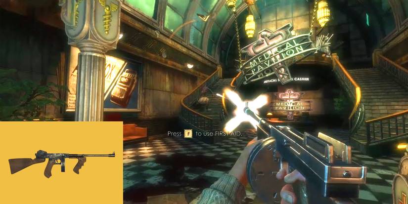 The shotgun is the best weapon of Bioshock and the most consistent one throughout the whole series. Holding it in Bioshock means nobody will survive. It has excellent upgrades, stopping power, and functional ammo capacity. The shotgun works well long and short-range. The only downside to it is that its ammo capacity needs to be upgraded to make the best use of it. Other than that, it is the best weapon to use in combination with almost all the plasmids in-game. Players can Electro Bolt enemies and shoot their heads clean off or, better yet, freeze them with winter blast and turn them into Christmas morning snowflakes.