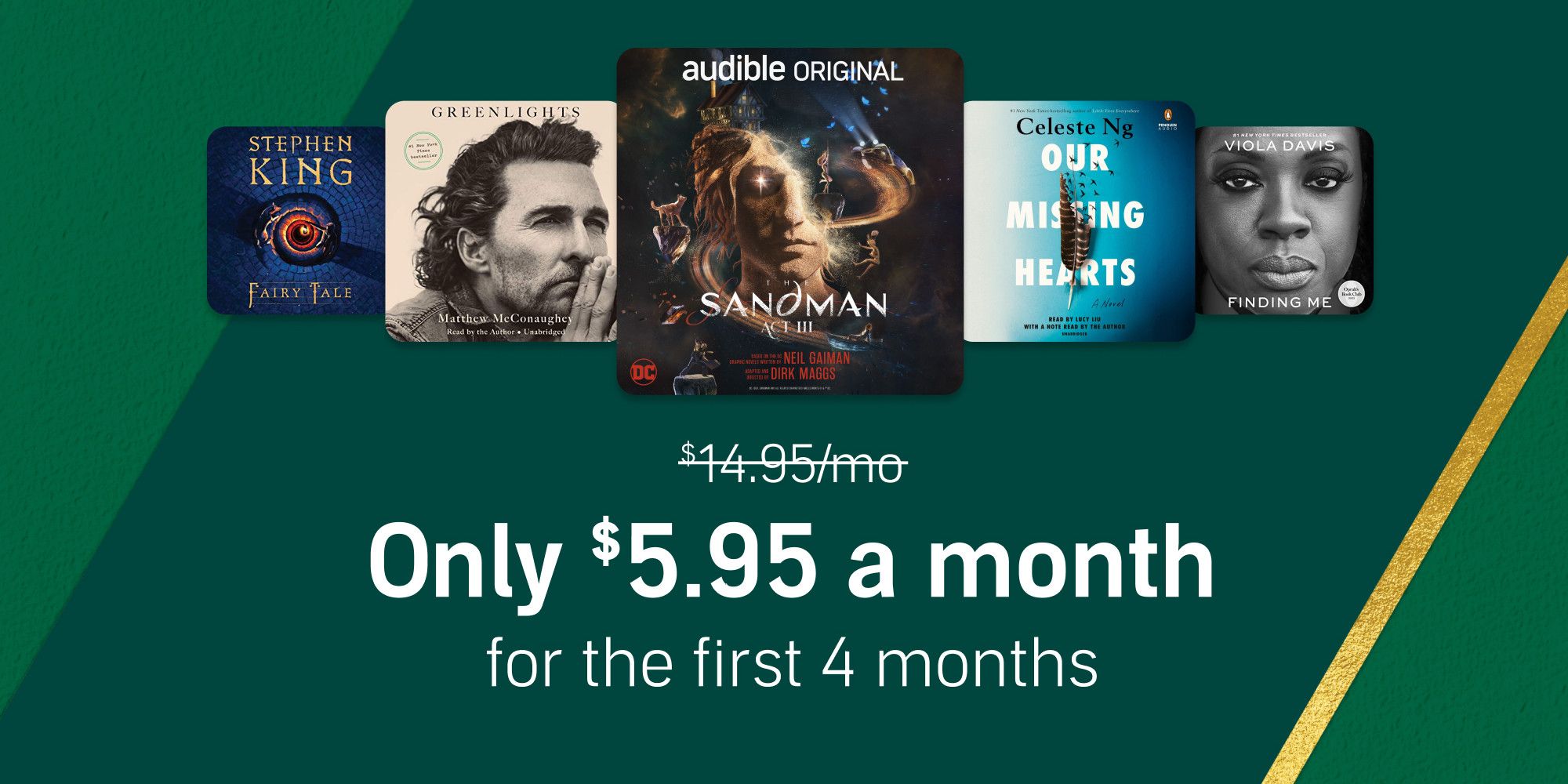 For a limited time, $5.95 per month for the first four months gets readers everything Audible has to offer. From one free bestseller every month to exclusive discounts year-round, Audible Premium Plus is the paid subscription service for book lovers.