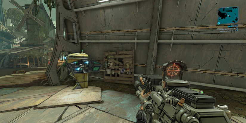 Deciding to spare the Vault Hunter's life, and turn down the siren's offer by destroying each of the five cameras, will result in missing out on the legendary loot. Players will only receive some cash and the satisfaction of destroying the siren's hopes of streaming the player transforming into a pool of blood and weapon parts. Each of the five cameras is hung up above the trap and is easy to knock off within a couple of seconds.
