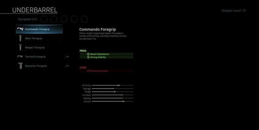 Another great addition to just about any SMG in Warzone, the Commando Foregrip is one of the first things you're going to unlock for your weapon and one of the last things you'll want to take off of it. It provides a bonus in recoil stabilization and aiming stability, for the cost of a tiny little bit of movement speed. If that seems worth it to you, well, it's because it is. It's a great weapon attachment.