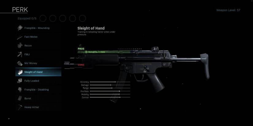 Lastly, Sleight Of Hand is a nice perk that comes with no drawbacks, besides the fact that it takes up an attachment slot. Sleight Of Hand increases your weapons reload speed. SMGs generally reload pretty quickly anyway, but because of the proximity in which a lot of SMG fights are going to be fought, every millisecond counts.