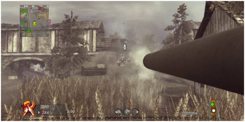 There is a bit of an advantage for players on the Soviet side, as the Soviet team has one more tank than the Germans. To make this fair, the German side has buildings and a wheat field players can hide in to ambush the tanks.