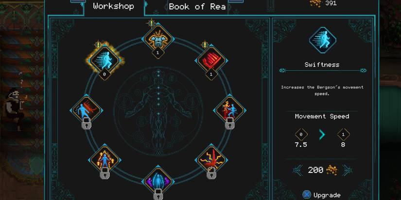 As we mentioned earlier players acquire gold in the dungeons. This is then used at the Bergson home for two different shops. The first belongs to family smithy that can permanently raise stats for attack power, health, speed, and so on.
