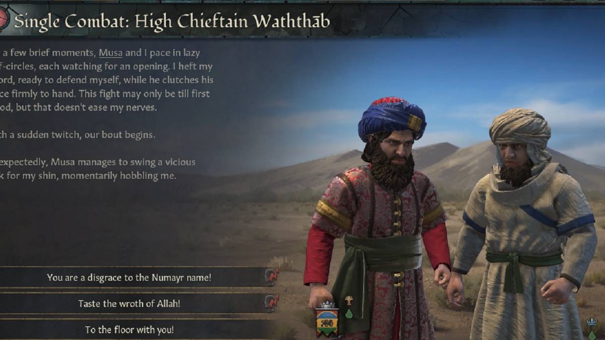 Unlike Crusader King's randomly generated poetry, dueling is a feature that was already in the series. It was originally added back in the Way of Life expansion to Crusader Kings 2, where characters could challenge each other to duels or become embroiled in battlefield duels.