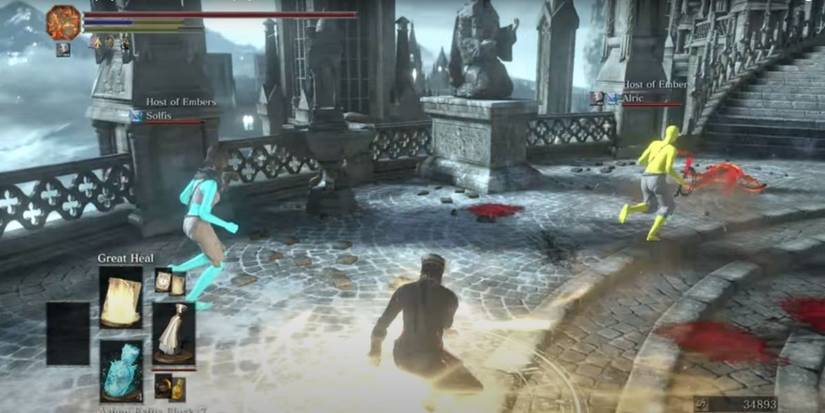 Calliio created a build that they use with their friends to portray a Pokémon trainer summoning their friends into battle. Each one of their friends has changed their characters' skin colors to represent the different Pokémon and Calliio uses firebombs in place of Pokéballs to summon them into the fight. This type of collaboration is great when it happens in Dark Souls and is certainly a treat for viewers. They use the Scholar's Set probably because it looks the most like clothing from the games and anime.