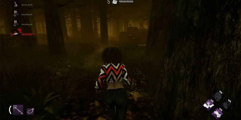 The player HUD has been updated to appear less intrusive and easier to read. Perks still appear in the bottom right corner, but status effects have been moved to the top right corner. Character portraits now appear in the top left corner, revealing which survivors have been hooked and which survivors can’t afford to be hooked again. Players now have the option to scale the UI in Dead by Daylight to their liking, making text either larger or smaller.