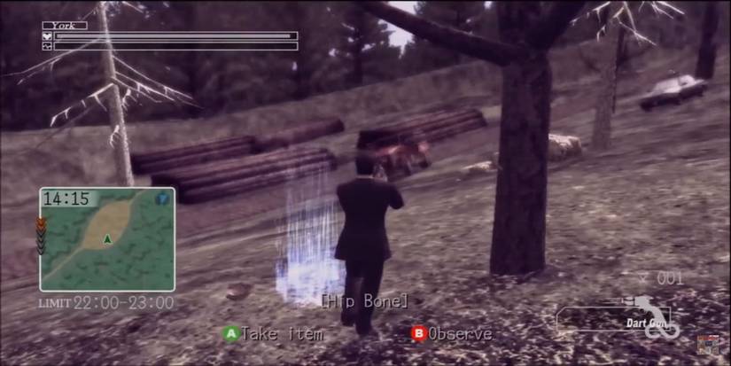 There is a trail behind Alberio Graveyard. Players have to take that path and keep going until they come across yet another dirt patch. This bone is next to a tree. Travis will pick it up after standing on the blue circle. Say hello to the dog too. He was a big help in finding the bones.